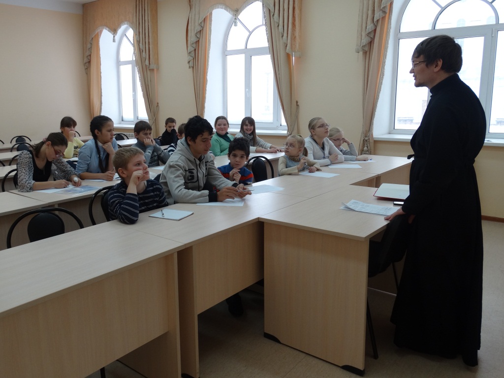 Первое занятие на тему «Жизнь святого князя Владимира: история и память» было предназначено для учащихся начальной школы. Второе занятие «О чем говорится в Библии?» ориентировалось на школьников 5–7 классов. Без внимания не остались и старшеклассники: для них была проведена лекция на тему «Новый Завет и первые христиане».