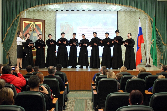 Учащиеся семинарии рассказали о самом празднике Рождества Христова, а также исполнили праздничные песнопения и колядки, которые не оставили равнодушными никого из сидящих в зале.