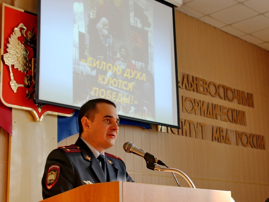 Перед началом олимпиады с приветственным словом к курсантам обратился заместитель начальника ДВЮИ МВД РФ по научной работе, к.ю.н., подполковник полиции Тулиглович Максим Анатольевич; далее слово было предоставлено начальнику кафедры социально-гуманитарных и экономических дисциплин (СГиЭД) ДВЮИ МВД РФ, к.ф.н., полковнику полиции Зинятовой Марине Николаевне, которая пожелала курсантам показать свои глубокие знания по религиоведению и достойно ответить на задания олимпиады.