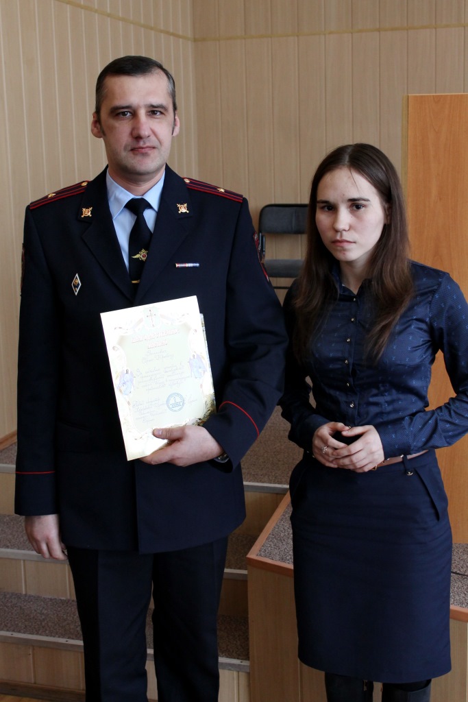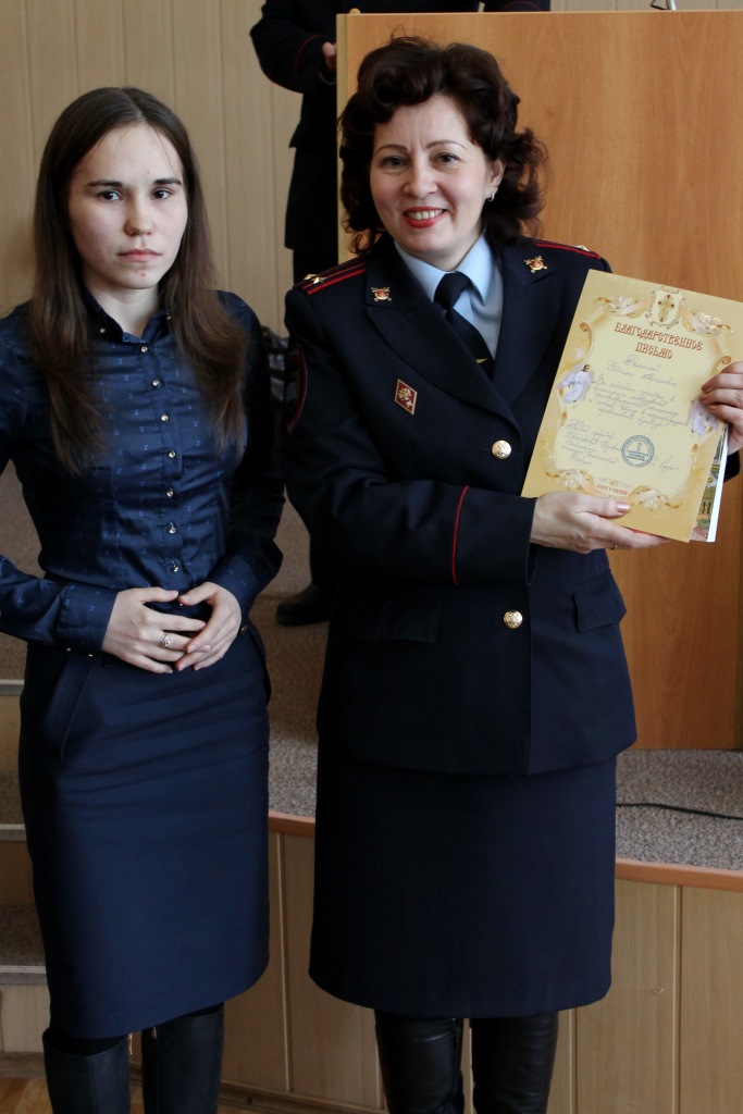 Заведующая учебно-методическим центром Морозова А.Н. от лица первого проректора Хабаровской духовной семинарии вручила благодарственные письма старшему преподавателю кафедры СГиЭД ДВЮИ МВД РФ, подполковнику полиции Рюминой Фатиме Арчиловне и преподавателю кафедры СГиЭД ДВЮИ МВД РФ, майору полиции Яхимович Сергею Юрьевичу.