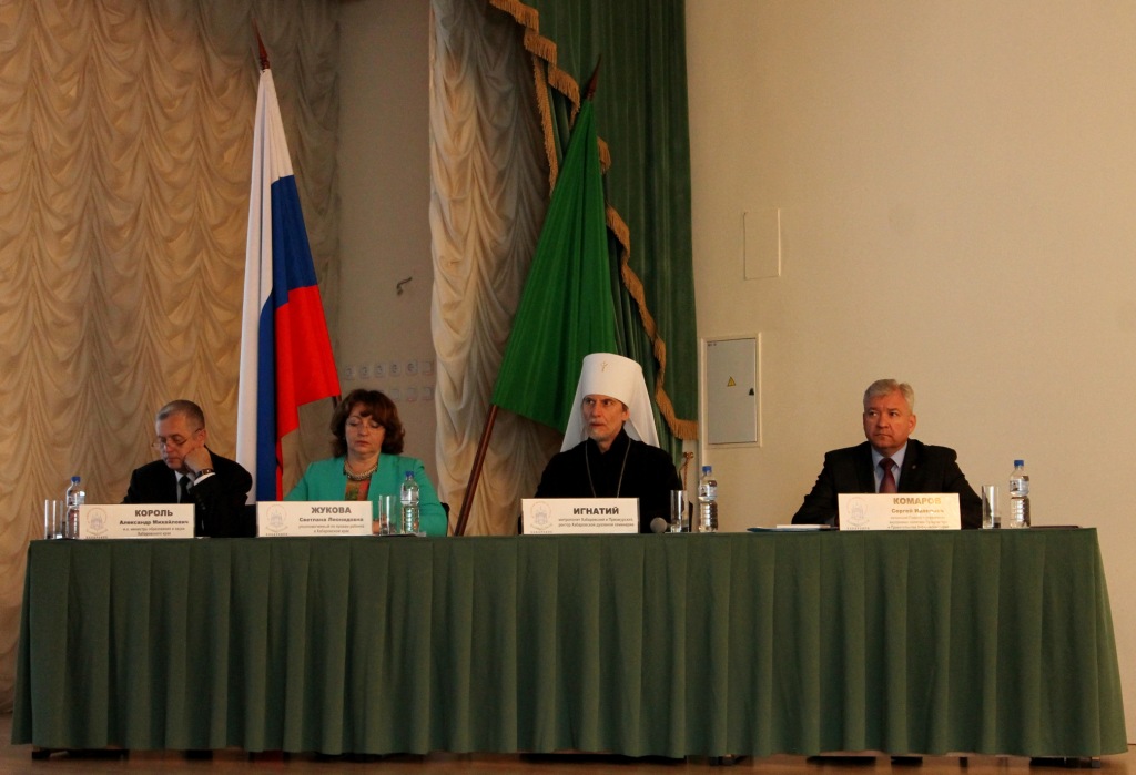 Пленарное заседание открыл митрополит Хабаровский и Приамурский Игнатий, ректор Хабаровской духовной семинарии. В своем слове владыка отметил, что с пришествием на землю Христа в мире стали важными понятия "личность", "душа", что Спаситель явил миру величайшую ценность человеческой жизни.
