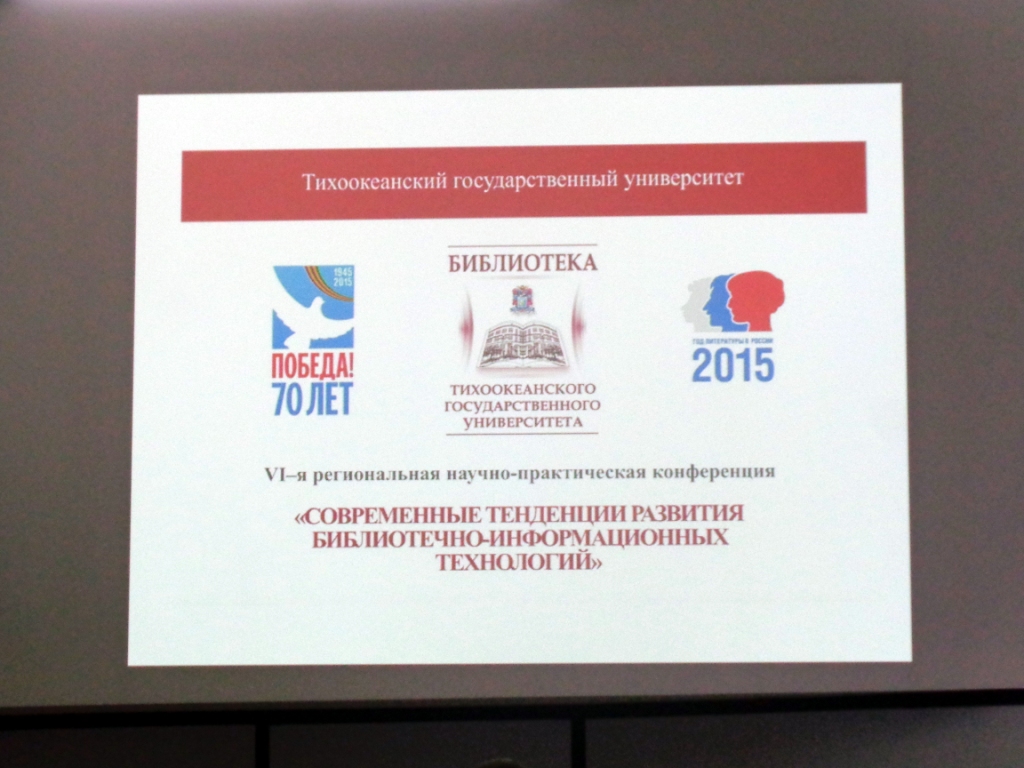 Хабаровская духовная семинария в лице заведующего библиотекой Кузнецова Максима Юрьевича, присутствовала на VI-й региональной научно-практической конференции «Современные тенденции развития библиотечно-информационных технологий», которая проходила 12-15 октября 2015 года в Тихоокеанском Государственном Университете.