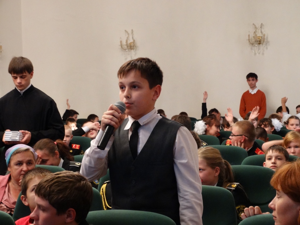 Актовый зал был полностью заполнен, и ребята с нетерпением погрузились в атмосферу единого сопереживания происходящему на экране действу. А там ребята смогли увидеть в доступной для детского восприятия форме документально-художественную историю о великом святом православного мира.