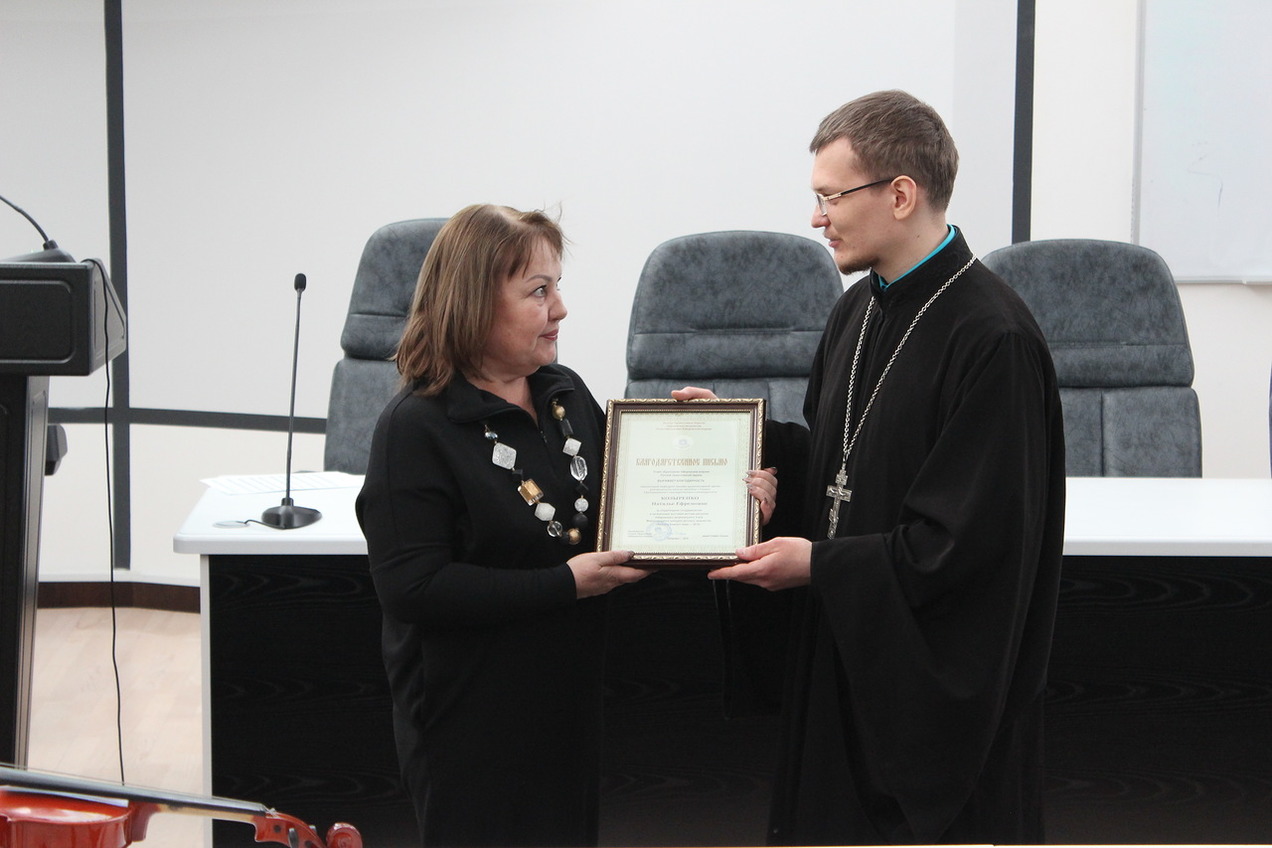 В завершение мероприятия священник Дионисий Проскурин вручил благодарственные письма администрации ТОГУ, выразив благодарность за плодотворное сотрудничество в области духовно-нравственного воспитания подрастающего поколения.