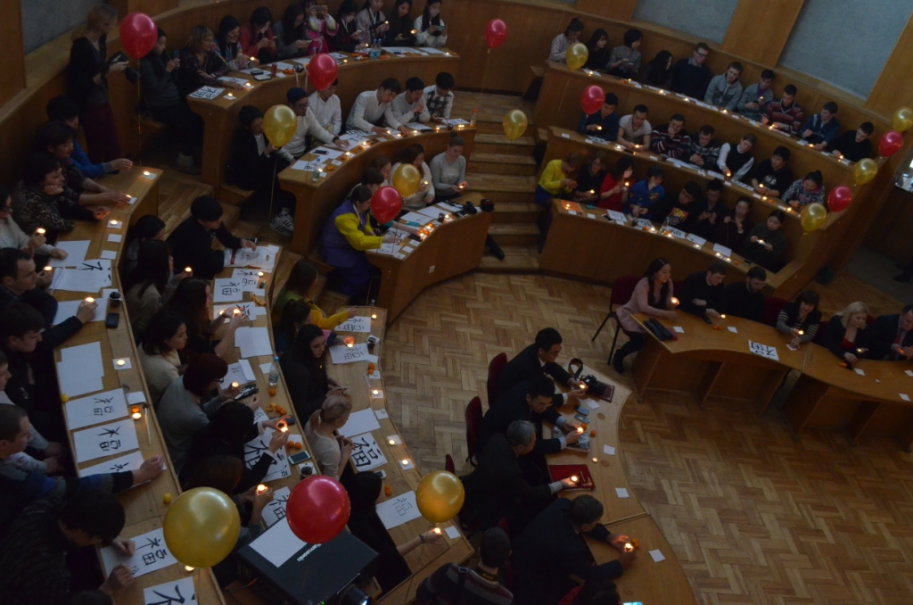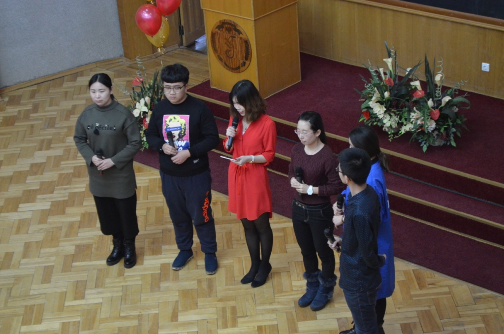 Мероприятие с самого начала излучало насыщенность выступлениями: поздравления от студентов - постановка сказки, рассказы о том, как празднуется Новый год; командные игры "Угадай мелодию", "Крокодил", мастер-класс по написанию иероглифа "счастье".