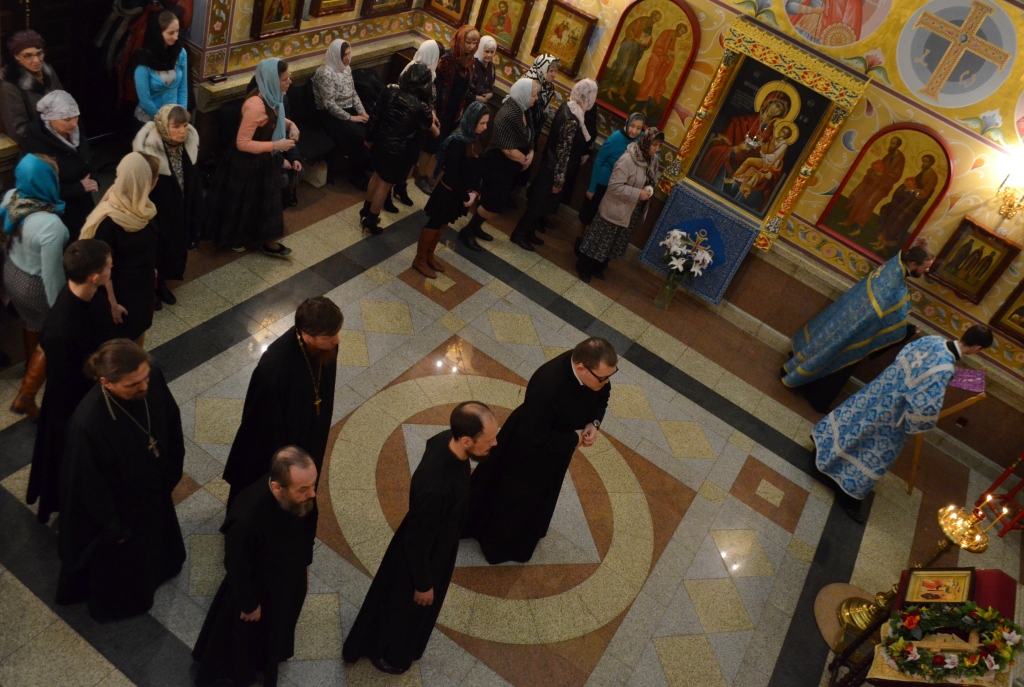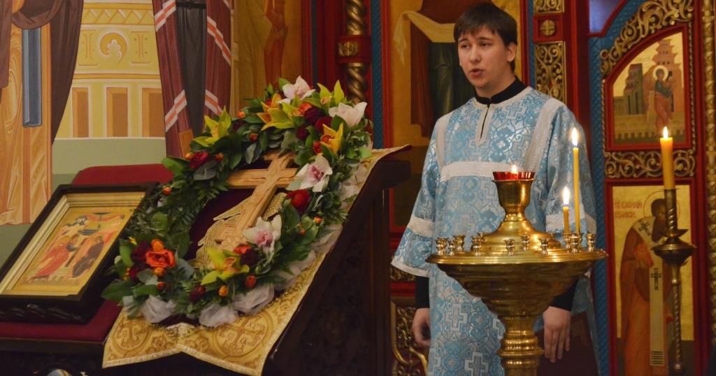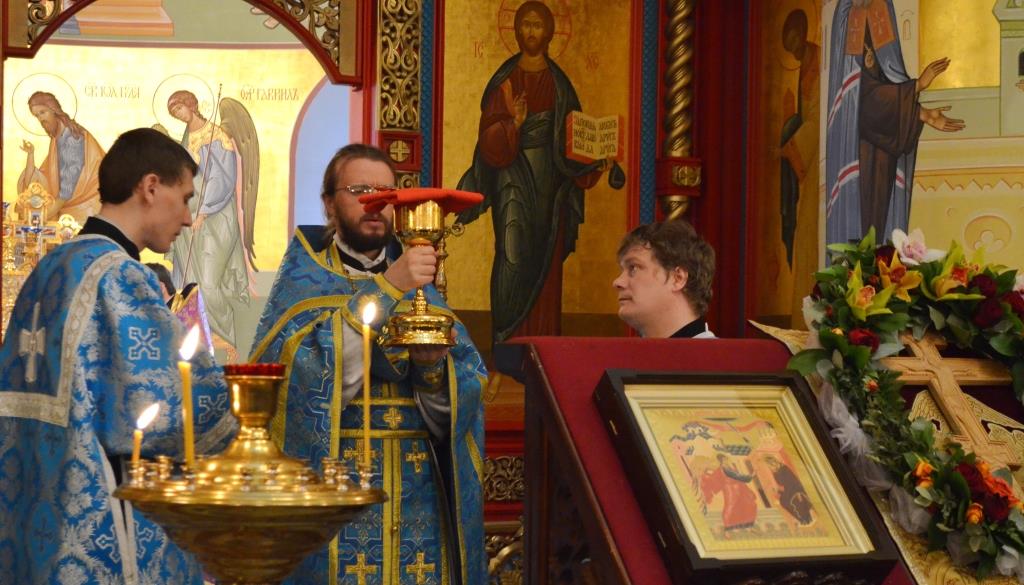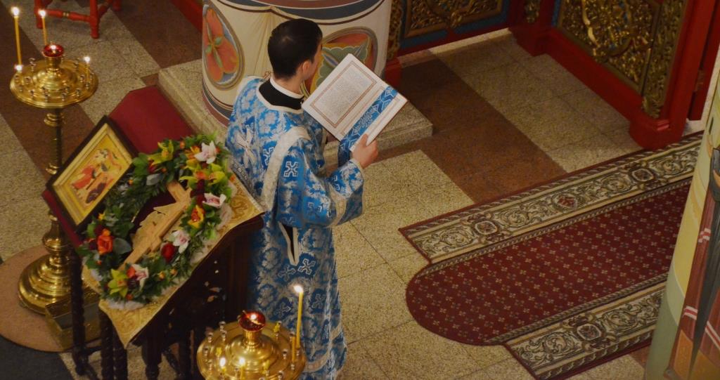 После причастия прошло прославления Святого Животворящего Креста и Пресвятой Богородицы.