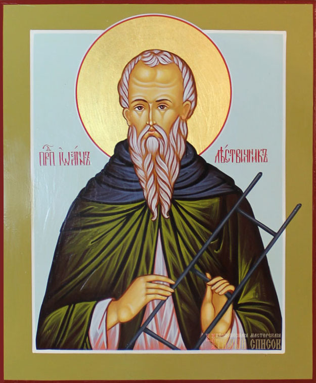 Преподобный Иоанн Лествичник почитается Святой Церковью как великий подвижник и автор замечательного духовного творения, называемого “Лествицей”, поэтому преподобный и получил прозвание Лествичника. Он родился около 570 г. в семье святых Ксенофонта и Марии. В 16 лет пришел в Синайский монастырь, где через четыре года послушания был пострижен в иноки. После смерти своего наставника преподобный Иоанн избрал отшельническую жизнь, удалившись в пустыню Фола (близ Синая), где провел 40 лет в подвиге безмолвия, поста и молитвы, и достиг духовного совершенства.