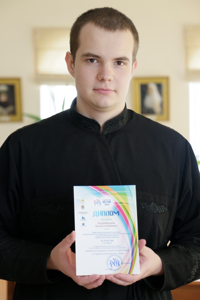 От Хабаровской семинарии принял участие Огородников Прохор, студент 3 курса с научным исследованием по тему: «Становление и развитие Русской Православной Церкви на Дальнем Востоке в конце XIX века (по материалам Благовещенских епархиальных ведомостей).