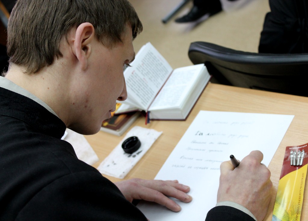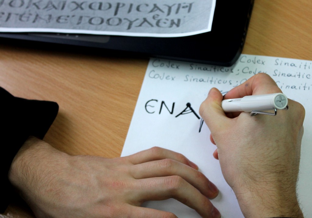 Отцом Дионисием была поставлена задача освоить технику древнего письма, а именно на древнегреческом языке переписать пером пролог Евангелия от Иоанна.
