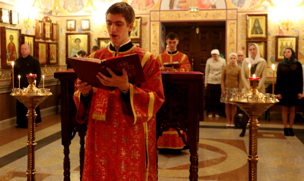 Богослужебные песнопения исполнил мужской хор под руководством студента 4 курса Евгения Семерни.