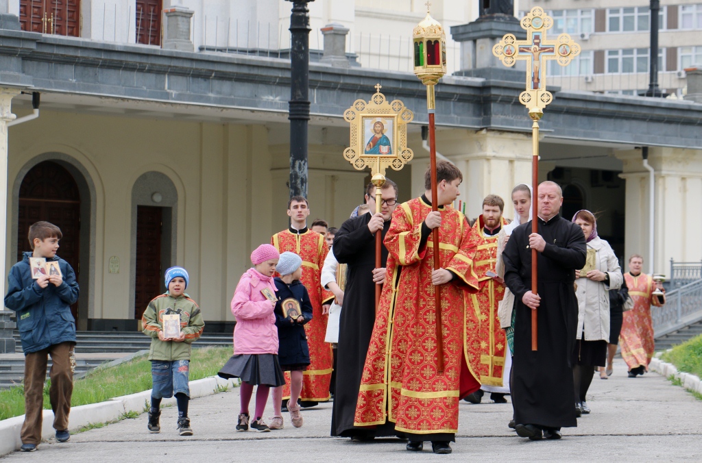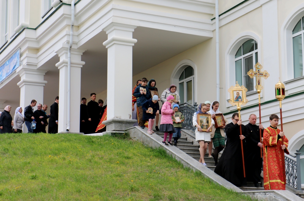 После богослужения по территории семинарии был совершен крестный ход. Священнослужители после чтения Святого Евангелия окропляли прихожан святой водой и произносили пасхальное приветствие - «Христос Воскресе!» на разных языках.