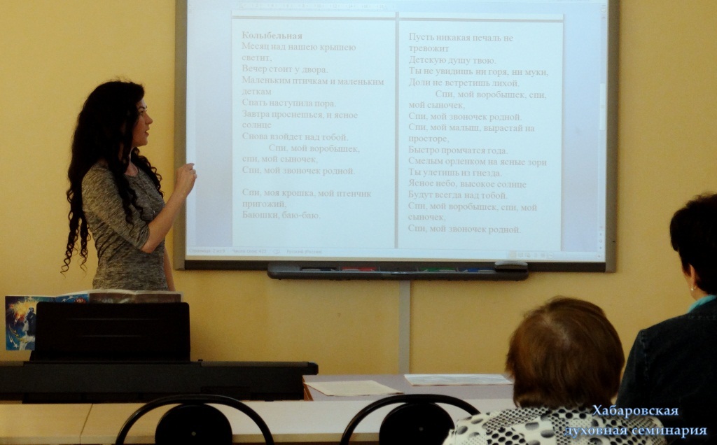 26 мая 2016 года был проведен мастер-класс по вокальному пению под названием «Будущее нации в руках матерей». Евгения Валентиновна Баннова, руководитель образцового вокального ансамбля “Настроение” Центра эстетического воспитания детей «Отрада» г. Хабаровска, рассказала слушательницам о пении и его благотворном влиянии на юную душу ребёнка.