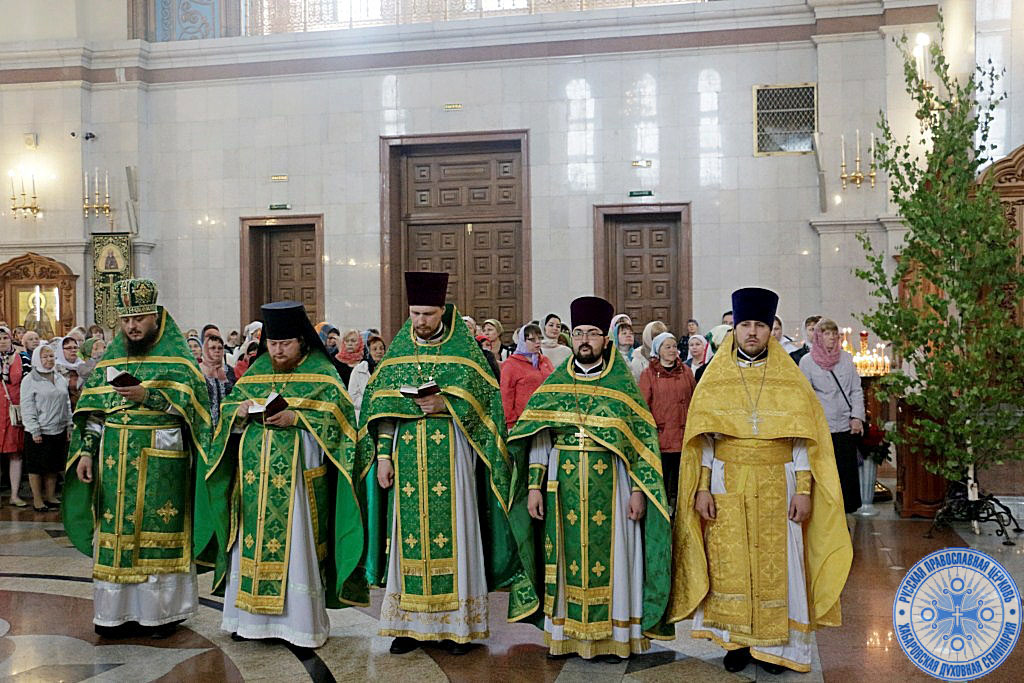 В этот торжественный день, когда все православные христиане празднуют День Рождения Матери Церкви, в Спасо-Преображенском соборе Дальневосточной столицы прошли праздничные богослужения.