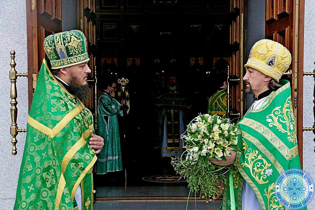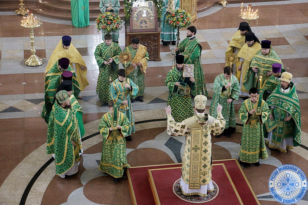 В завершении торжественно отслуженных богослужений владыка Владимир произнес проповедь о празднике Святой Пятидесятницы.