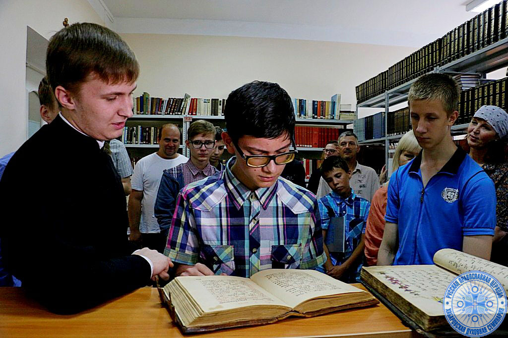 Затем, для гостей была проведена обзорная экскурсия по домовому храму, в честь свт. Иннокентия Московского, читальному и актовому залам, библиотеке, учебным аудиториям и общежитию.