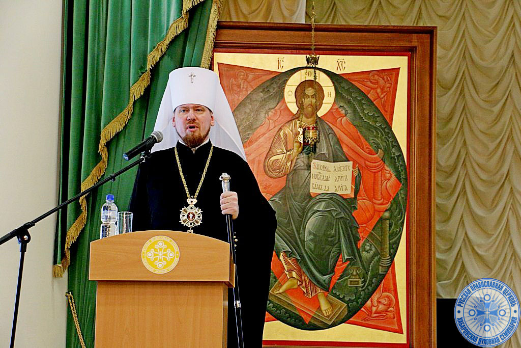 В начале к собравшимся обратился ректор семинарии Высокопреосвященнейший Владимир, митрополит Хабаровский и Приамурский, акцентируя внимание на ответственности, которая ложится на выпускников духовной семинарии.