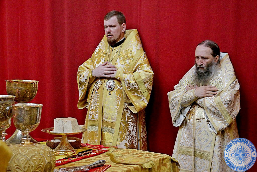 Торжества начались с Божественной Литургии, которую возглавил ректор семинарии митрополит Владимир, в сослужении епископа Гурия Арсеньевского и Дальнегорского, а также преподавателей и выпускников в священном сане.