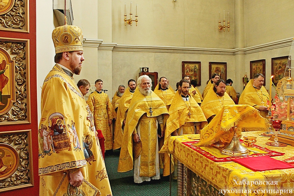 Божественную литургию в свой День Ангела возглавил ректор Хабаровской духовной семинарии – митрополит Хабаровский и Приамурский Владимир.