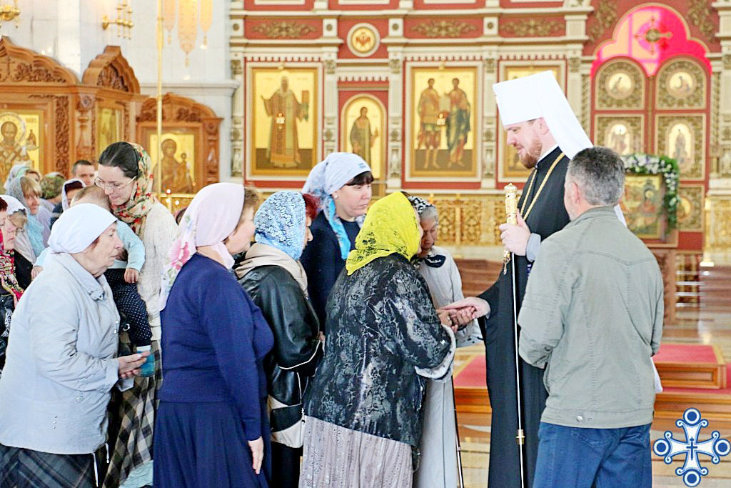 Затем владыка Владимир обратился к многочисленным прихожанам со словом проповеди и поздравления с празднуемым событием.