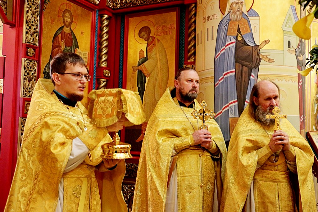 За богослужением было прочитано Евангельское зачало дня. После сугубой ектеньи отец Дионисий вознес Господу молитву о умирении вражды на Украине.