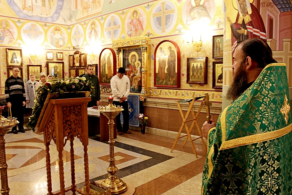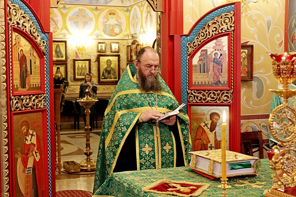 Богослужение возглавил игумен Петр (Кривцов). Его Высокопреподобию сослужили: иерей Александр Хоменко, иерей Анатолий Дакич, иеромонах Даниил (Пастухов), иерей Михаил Шевченко, диакон Даниил Нацарянус.