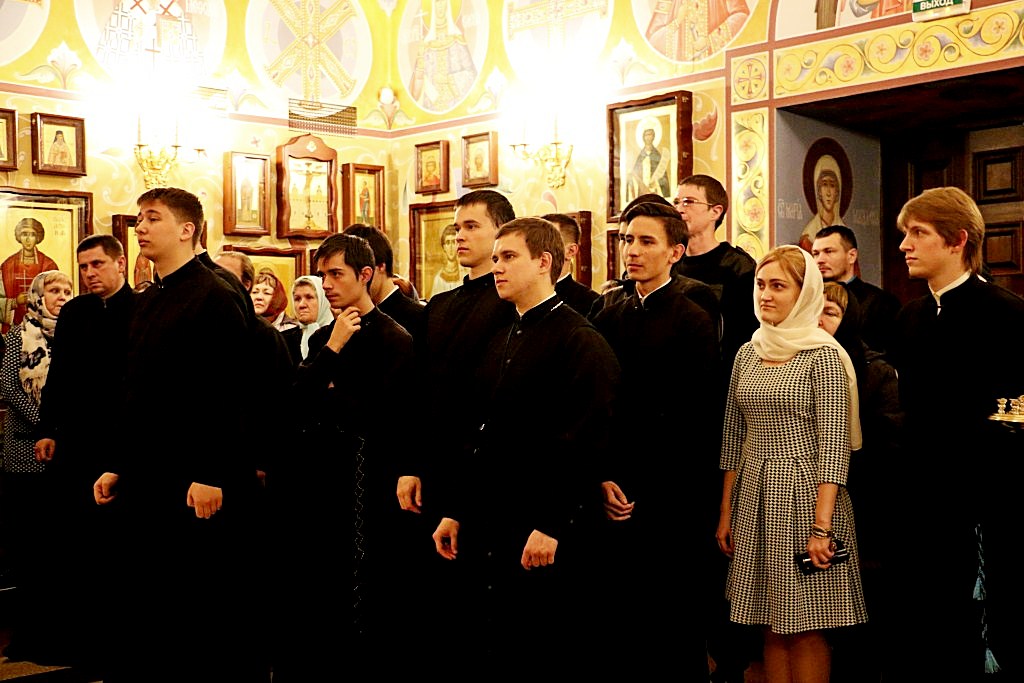 В семинарском храме присутствовало большое количество молящихся, так же присутствовали студенты и преподаватели духовной школы.