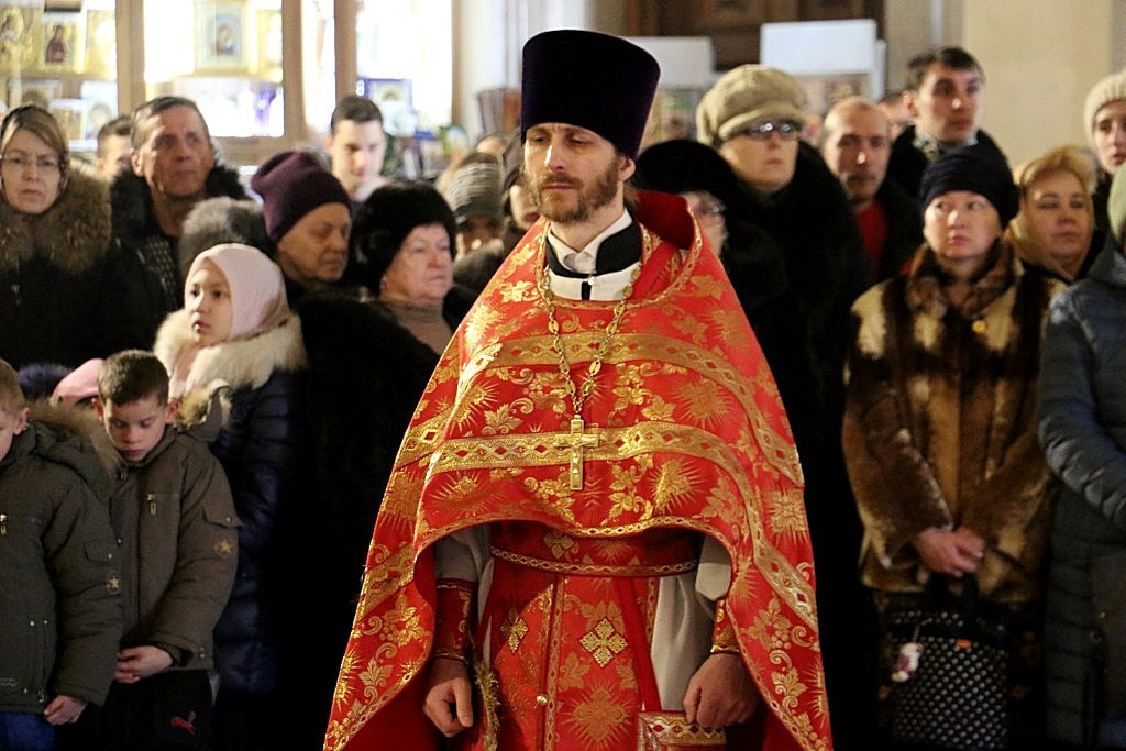 В день, когда Святая Церковь чтит память всех Новомучеников и Исповедников Российских, нижний храм Преображенского собора был особо наполнен молящимися, многие из которых прибыли на «малую пасху» с детьми.