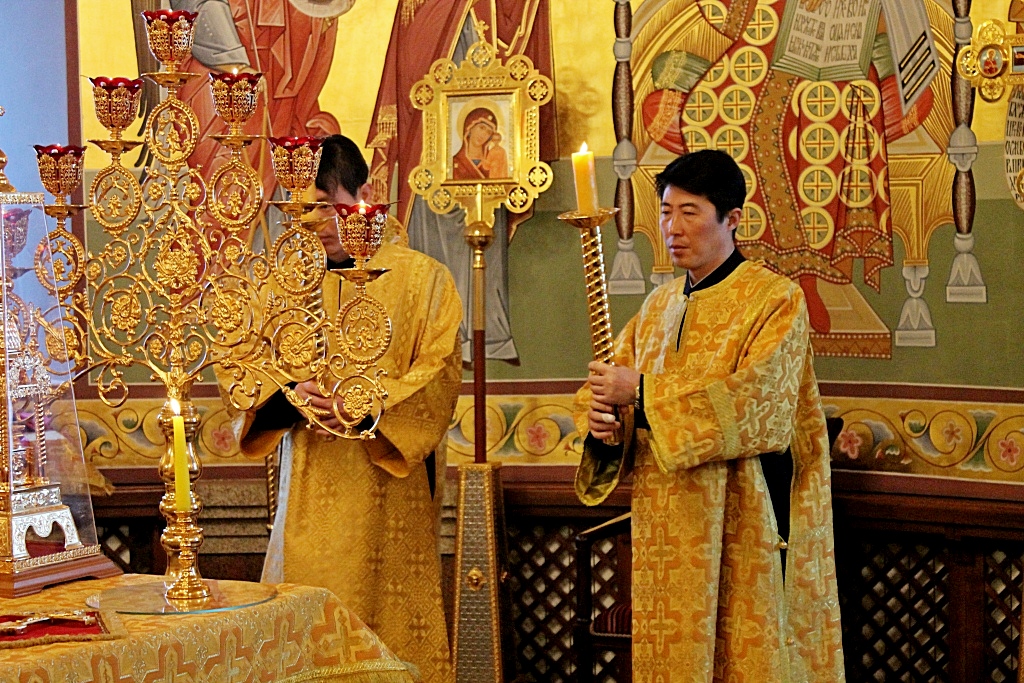 Владыке митрополиту за богослужением сослужили: первый проректор Хабаровской духовной семинарии, иерей Дионисий Проскурин; проректор по научной работе, иерей Максим Суворов; клирик Гонконгского храма Русской Православной Церкви, иерей Анатолий; а также духовенство собора.