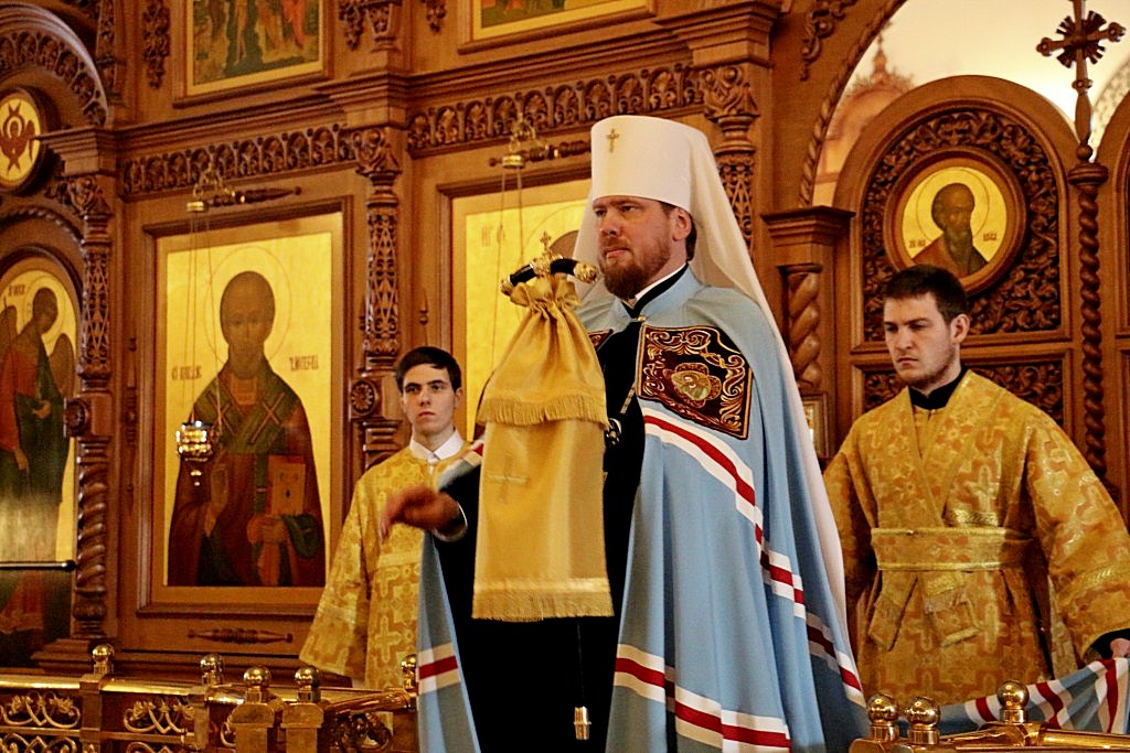 Владыке сослужили: Первый проректор семинарии, священник Дионисий Проскурин; проректор по научной работе, священник Максим Суворов; преподаватель церковно-практической кафедры священник Виктор Галян и духовенство собора.