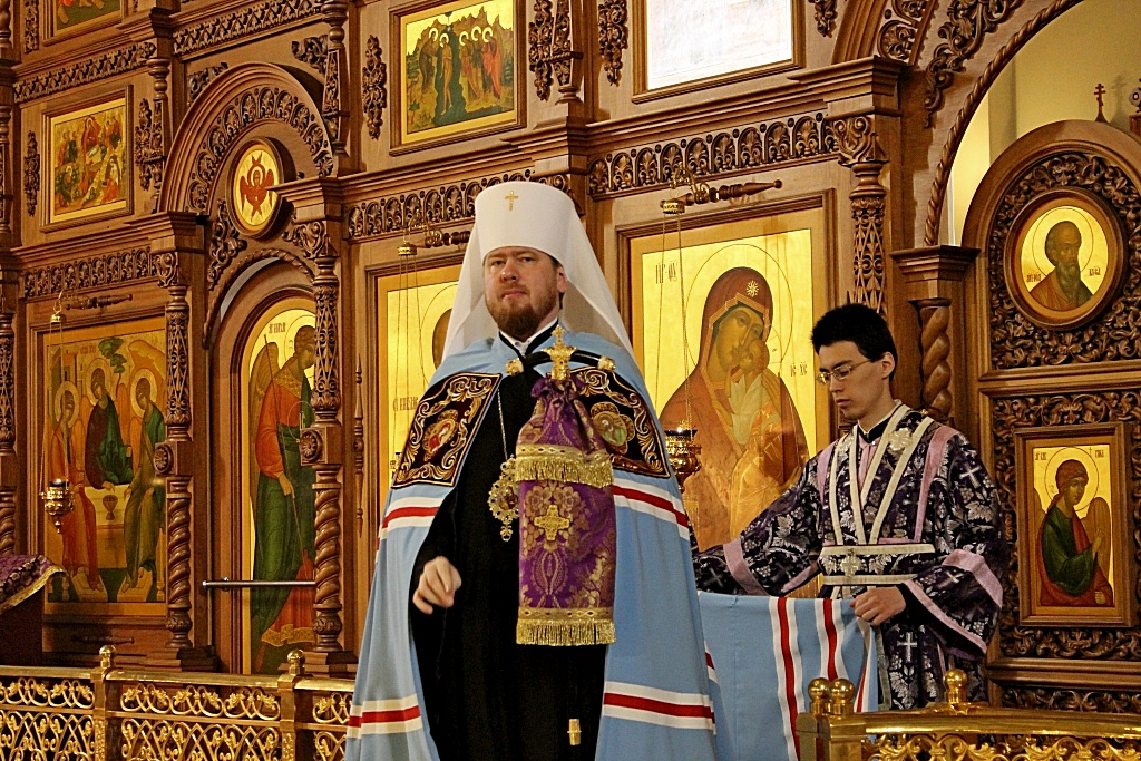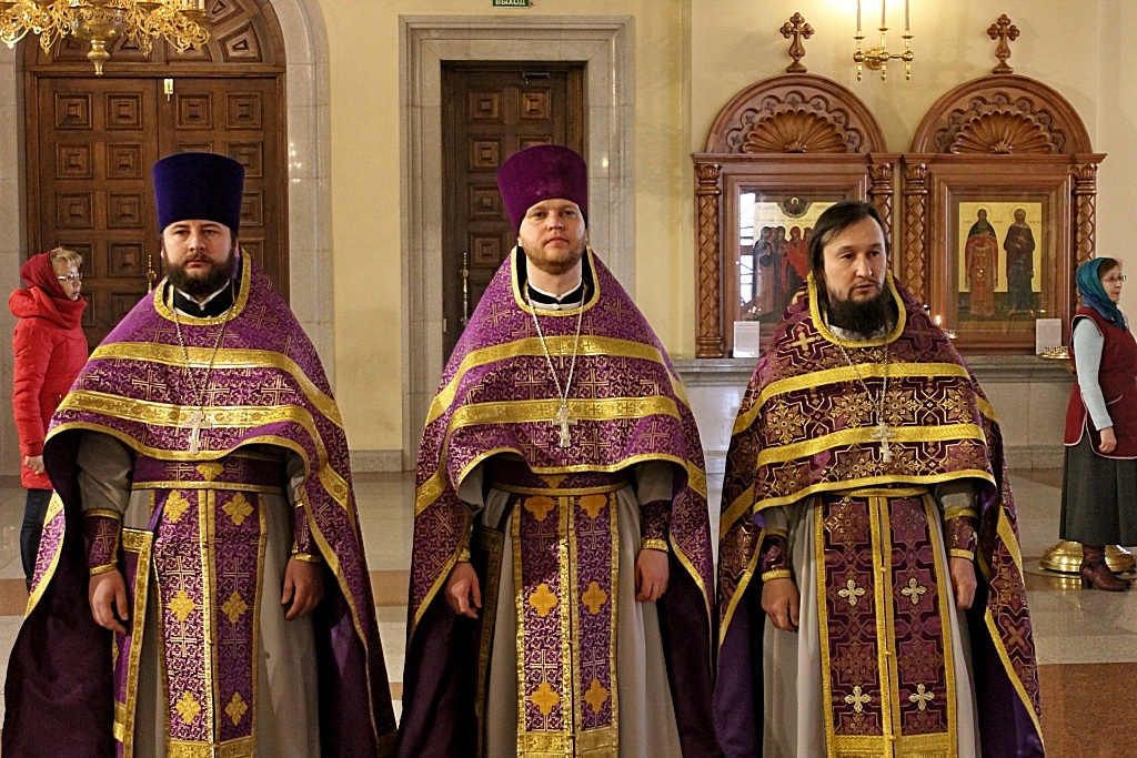 Его Высокопреосвященству сослужили: ключарь кафедрального собора, протоиерей Георгий Сивков; первый проректор Хабаровской духовной семинарии, иерей Дионисий Проскурин; преподаватель церковно-практической кафедры, иерей Виктор Галян, а также духовенство собора.