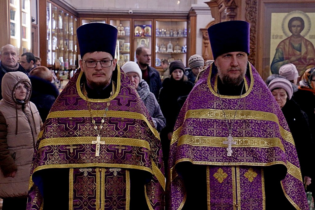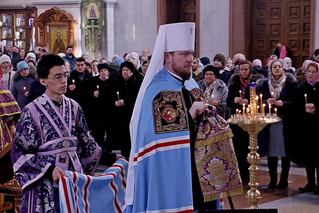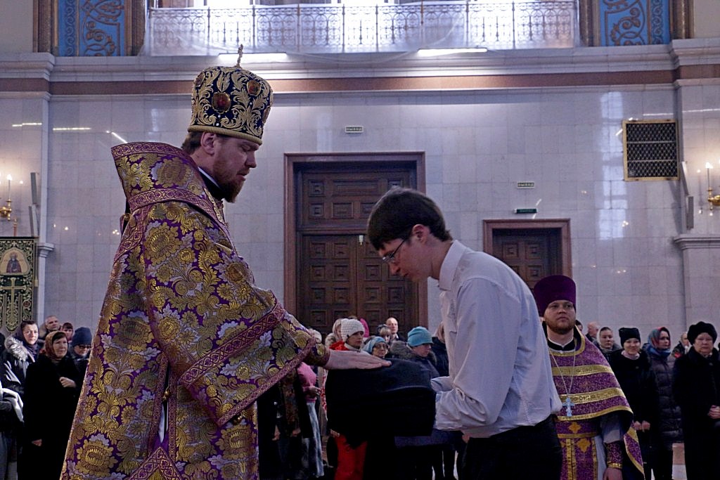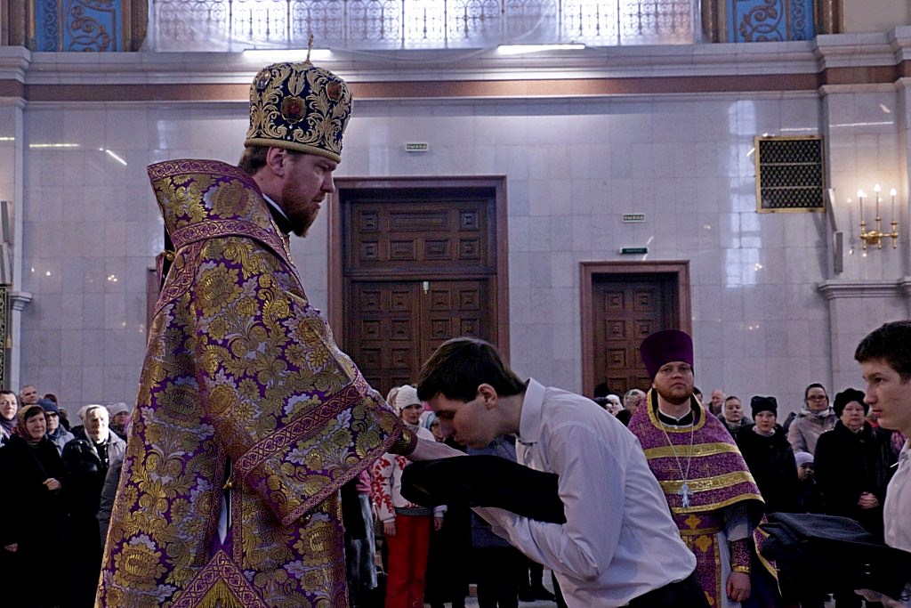 Его Высокопреосвященству сослужили: ключарь кафедрального собора, протоиерей Георгий Сивков; первый проректор духовной семинарии, иерей Дионисий Проскурин; проректор по научной работе, иерей Максим Суворов; преподаватель церковно-практической кафедры, иерей Виктор Галян, а также духовенство собора.