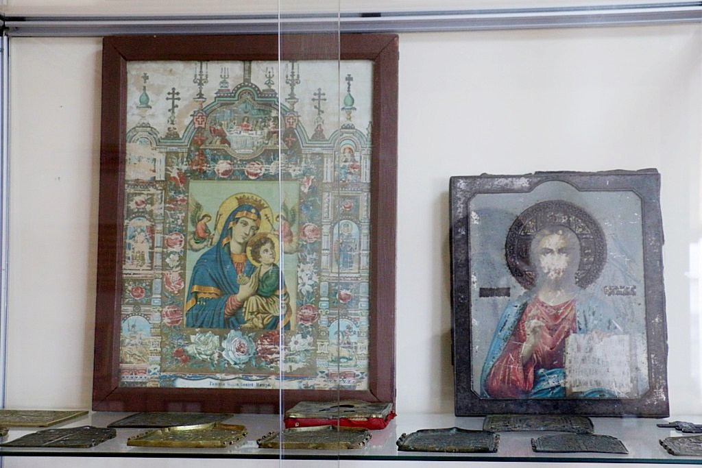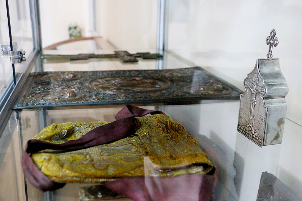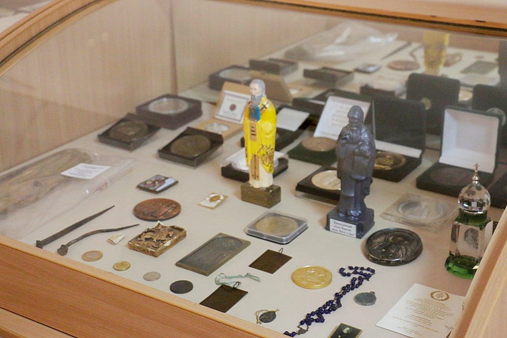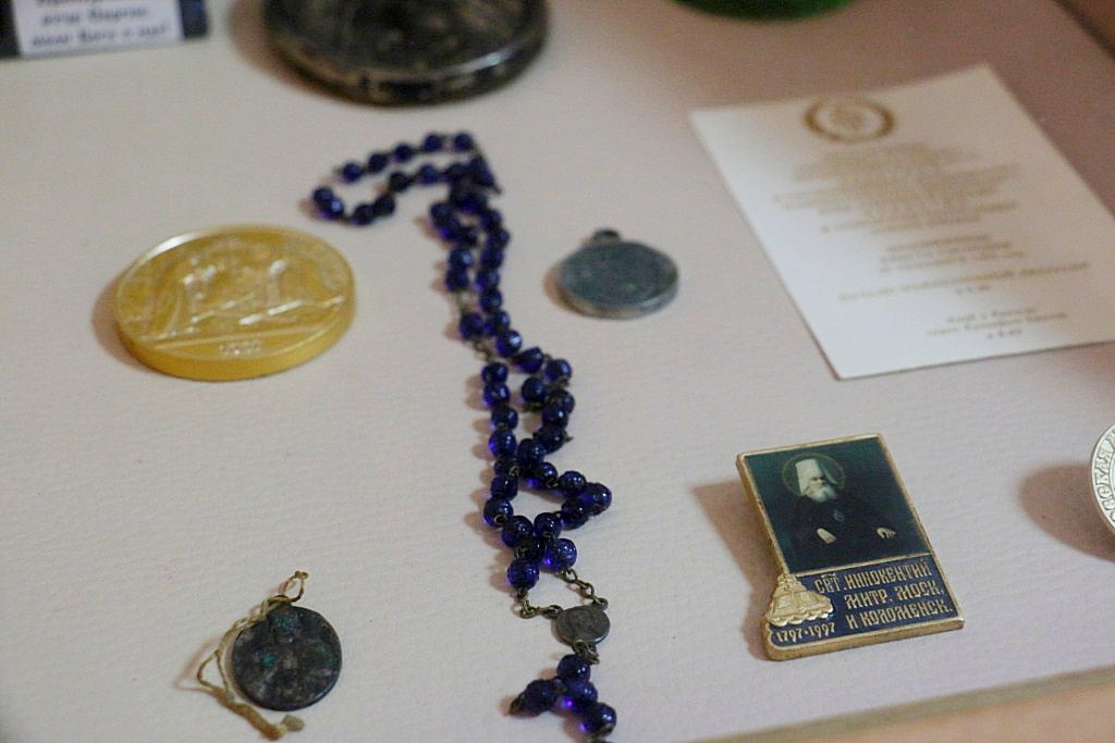 Среди экспонатов, непосредственно связанных с именем святителя Иннокентия митрополита Московского апостола Сибири и Америки, в музейной экспозиции имеется частица нижнего венца храма Петра и Павла, который был построен и освящен на Петровской косе («Петровское зимовье») священником Гавриилом Вениаминовым – сыном святителя Иннокентия Московского. Петровская коса («Петровское зимовье») находилась на юго-западном берегу Сахалинского залива Охотского моря. 167 лет назад там базировался опорный пункт Амурской экспедиции адмирала Геннадия Ивановича Невельского.