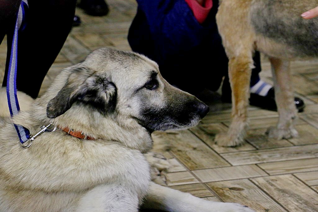 Еще всем гостям мероприятия запомнилась собака по кличку Жуля. Она была рада всем пришедшим на эту акцию. Собачка активно позировала нашему фотографу, Алексею Скуридину, ждала, чтобы её забрали любящие хозяева.