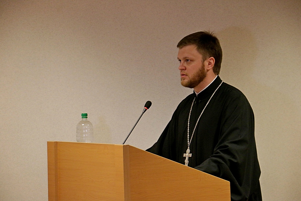 С приветственным словом выступил священник Максим Суворов, проректор по науке и инновациям Хабаровской духовной семинарии.