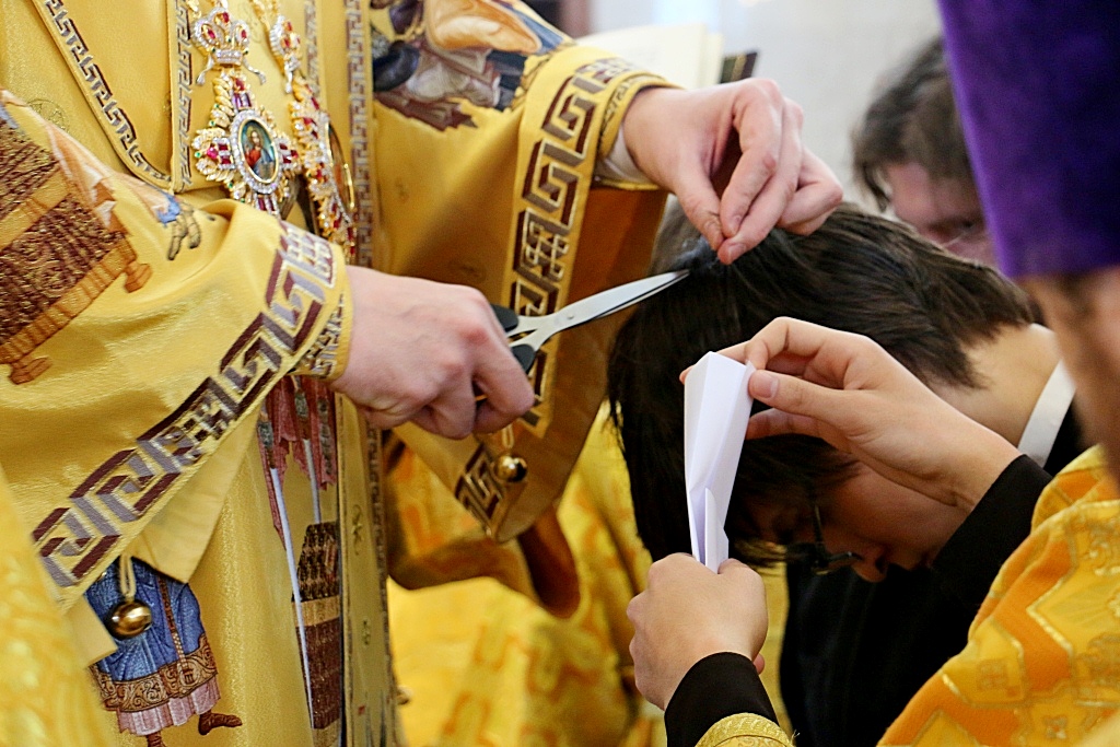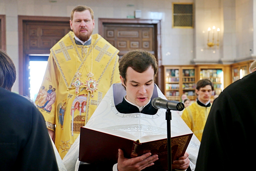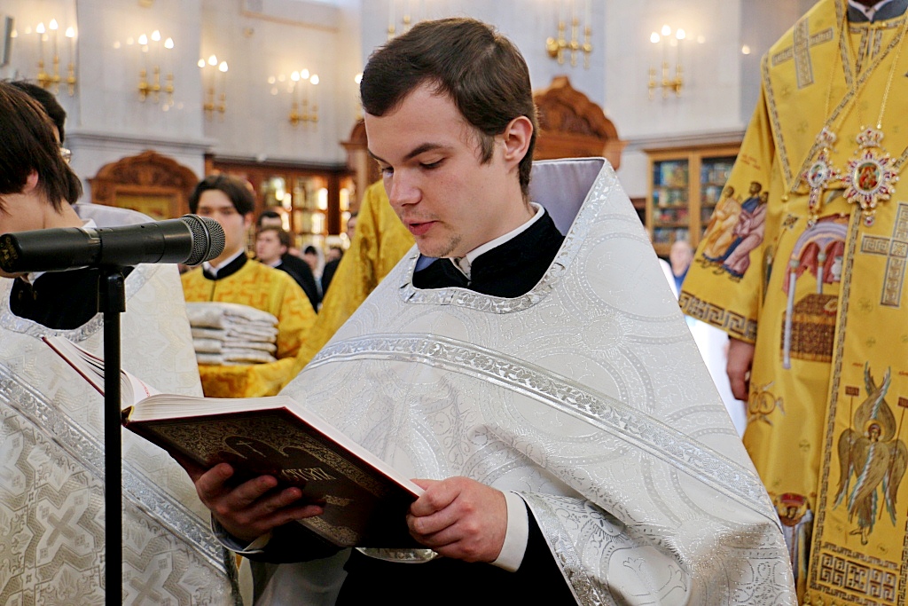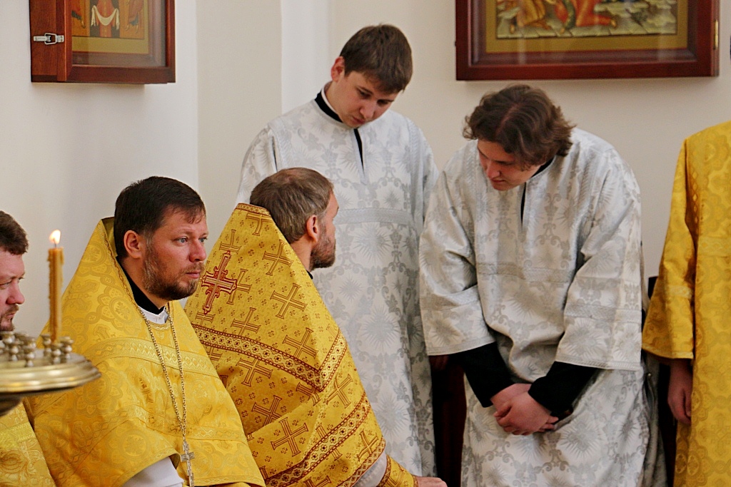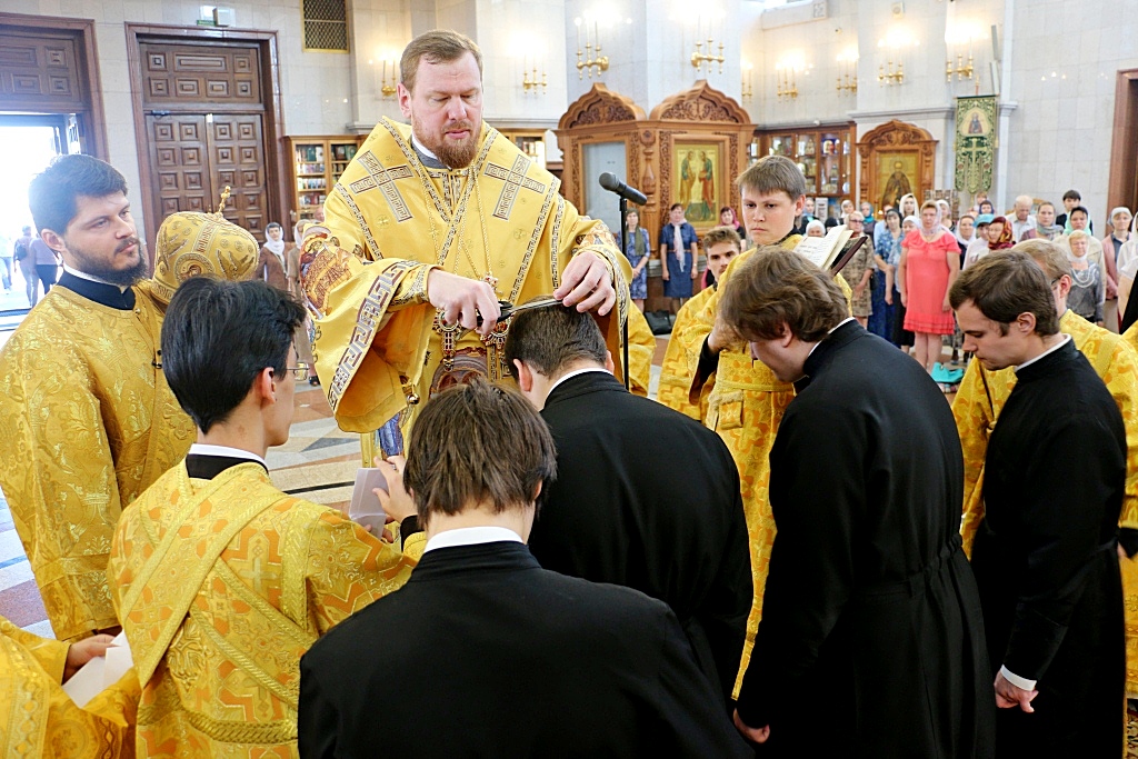 Перед началом Божественной литургии, митрополит Владимир совершил поставление во чтецов выпускников 2016/2017 года Хабаровской духовной семинарии: Александра Емельянова, Прохора Огородникова, Владислава Савчина и Николая Трофимова.