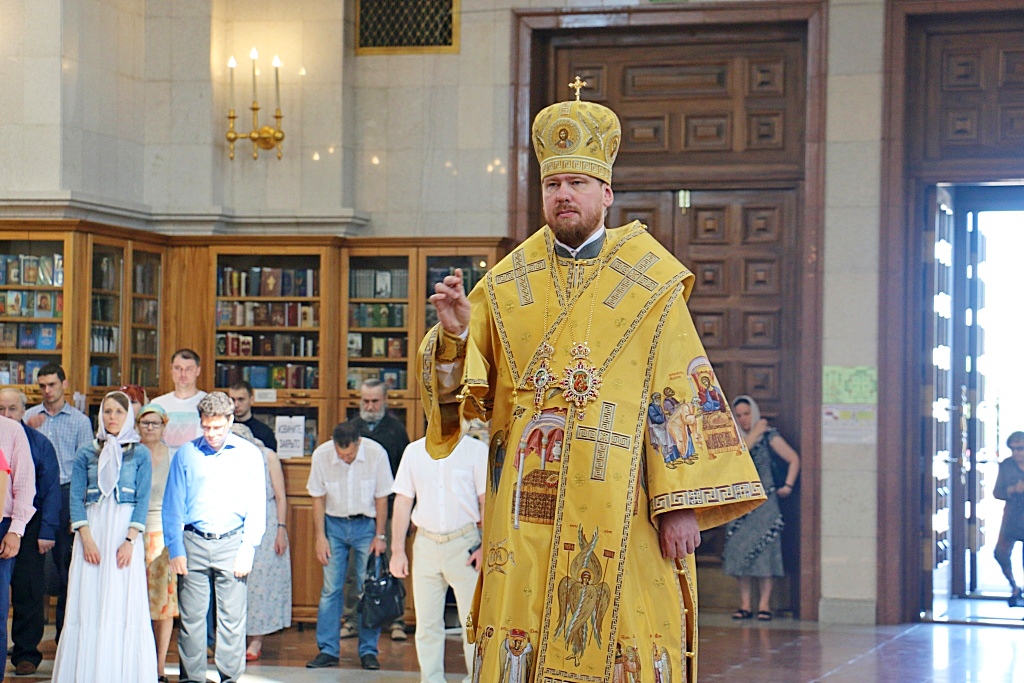 После чтения евангелия владыка Владимир обратился с проповедью к прихожанам о прочтённом отрывке из Евангелия об исцелении слуги сотника. Владыка отметил, что Господь увидел веру язычника и сотворил исцеление, не приходив к нему. Господь помогает всем страждущим, которые идут к Спасителю.