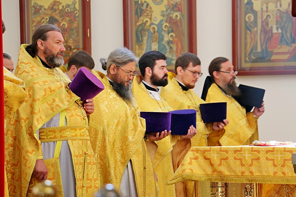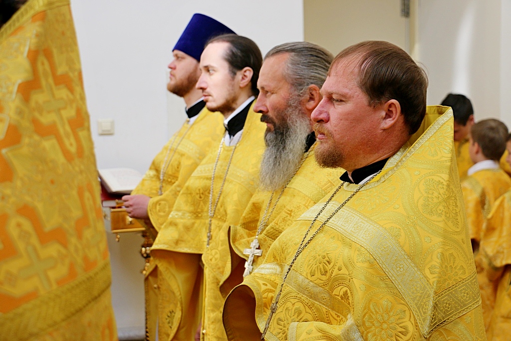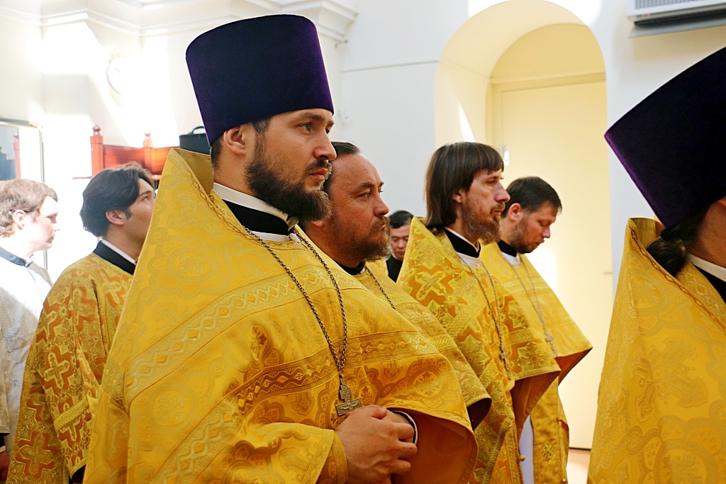Его Высокопреосвященству сослужили: протоиерей Георгий Сивков, ключарь Спасо-Преображенского кафедрального собора г. Хабаровска; иерей Дионисий Проскурин, первый проректор семинарии, а также духовенство храма и студенты заочного отделения в священном сане.