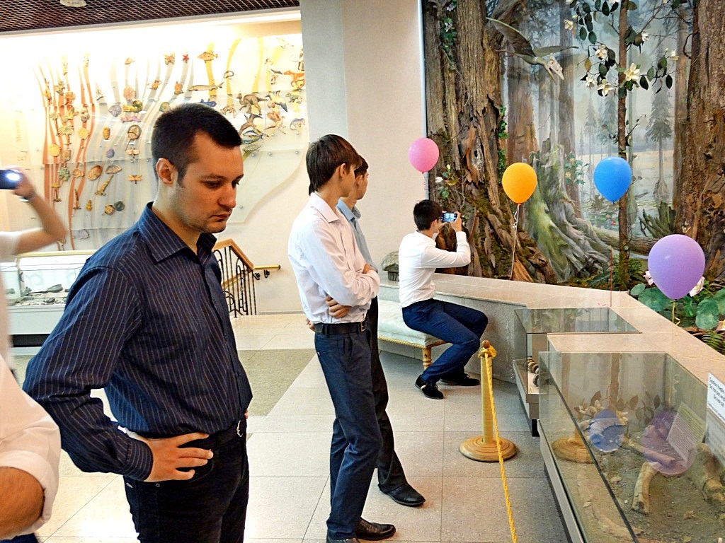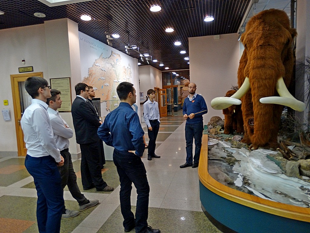 В начале экскурсии студентам была дана возможность ознакомиться на экспозиции «Природа Амура» с богатством флоры и фауны Дальнего Востока, а также образцами древних окаменелостей. Экскурсовод рассказал о вымерших видах древних животных, населявших Хабаровский край, о коренных народах и о том, как пришло православие в эти земли.