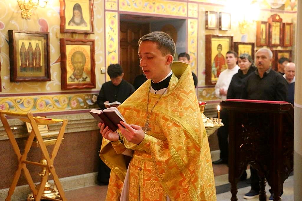 Богослужение возглавил благочинный семинарского храма – иерей Олег Кузнецов, которому сослужили студенты заочной формы обучения духовной школы.