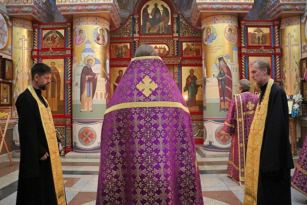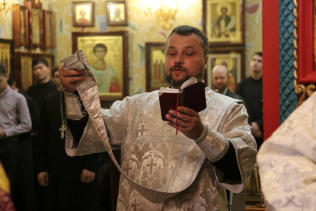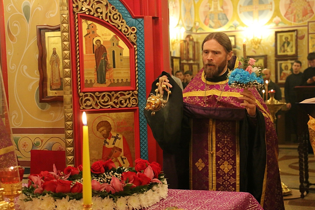Сегодня, когда православные христиане празднуют Воздвижение Креста Господня — это один из 12 главных, или двунадесятых праздников Православной Церкви. Богослужение возглавил благочинный семинарского храма – иерей Олег Кузнецов, которому сослужили студенты заочной формы обучения в священном сане.