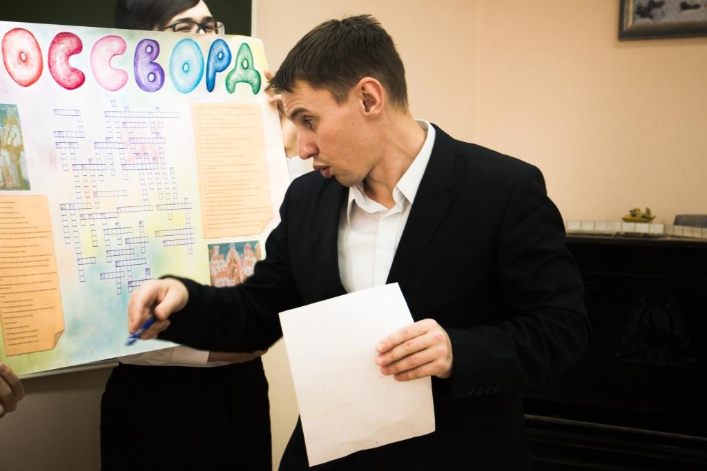 Вот и седьмого ноября, ребятам подготовительного отделения нужно было прийти на занятие по Истории Церкви, с подготовленными кроссвордами. Тема - «Вселенские соборы», была выбрана для закрепления знаний у учащихся. Студенты были разделены на две команды: одна занималась работой с Первым собором, а другая со Вторым. Здесь необходимо было проявить и понимание, и логику, и умение представить свои мысли аудитории.