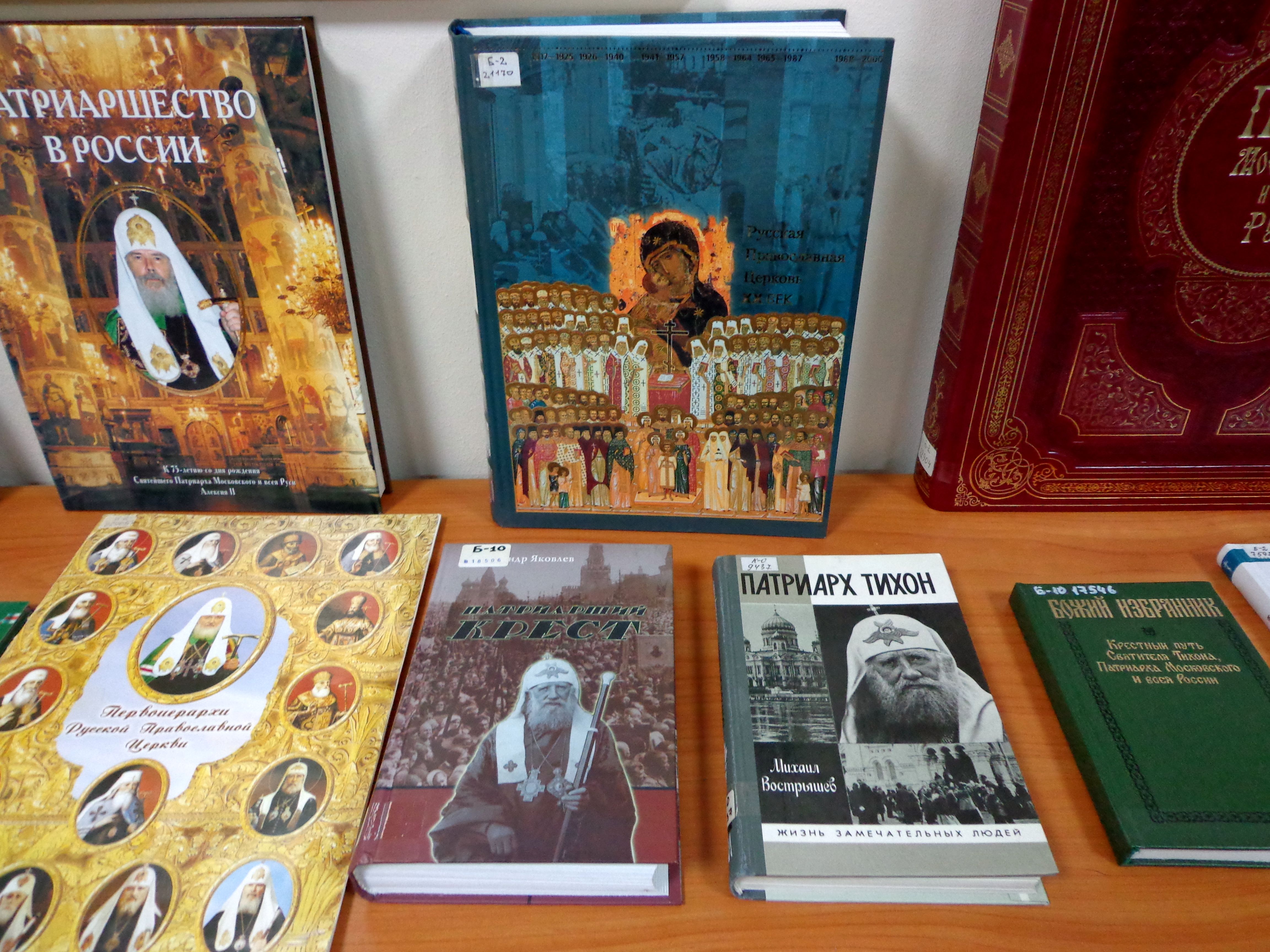 Открылась книжная экспозиция, посвященная 100-летию восстановления патриаршества Русской Православной Церкви