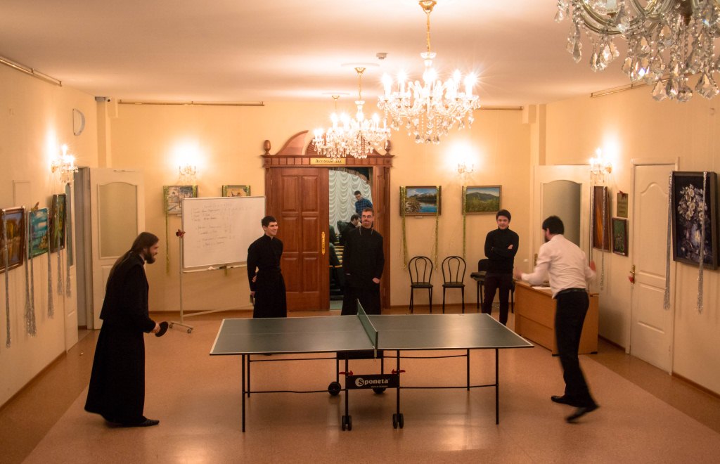 - Мероприятие такого формата в семинарии проводилось впервые. Главной задачей культурно-спортивного вечера было общение преподавателей, сотрудников и студентов семинарии в непринужденной обстановке, которой сопутствует как спортивная часть (турнир по настольному теннису), так и культурная (настольные игры, чай с печеньем, приятная музыка).