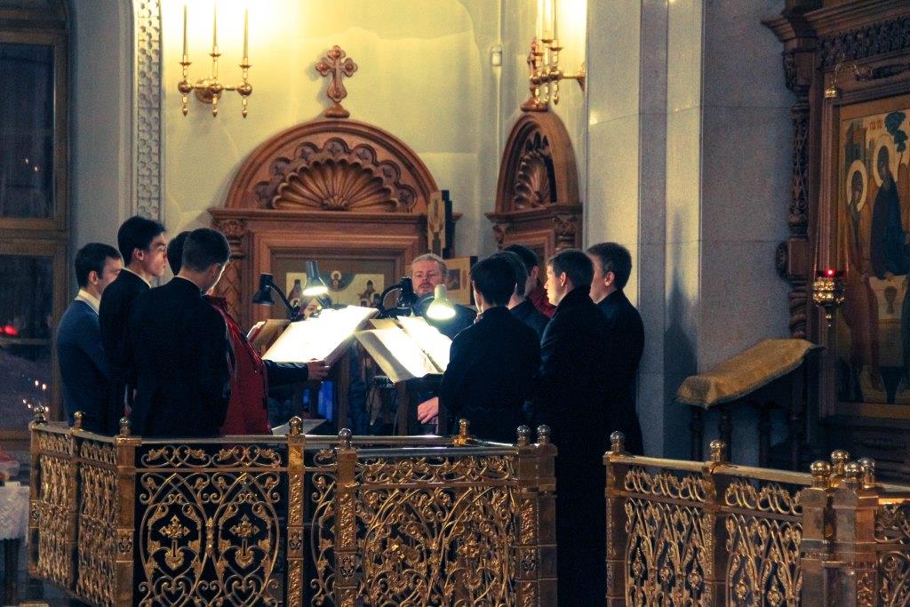 Воспитанники духовной школы исполнили песнопения антифонно с певчими собора.