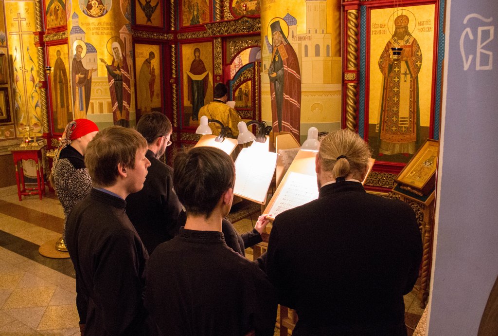 Богослужебные песнопения исполнил смешанный хор в составе: преподавателей и студентов духовной школы, под управлением регентов – Бородиной Я. А. и Хрустовой А. В.