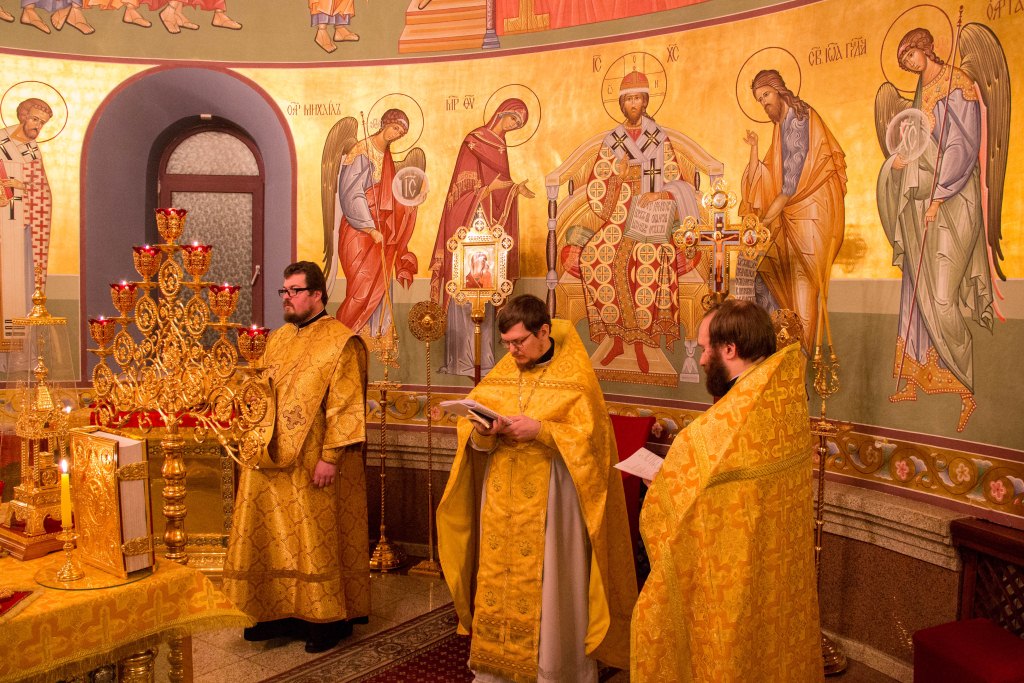 Богослужение возглавил первый проректор духовной школы – иерей Дионисий Проскурин в сослужении клириков Магаданской епархии – иерея Димитрия Просяника и диакона Иоанна Голубева.