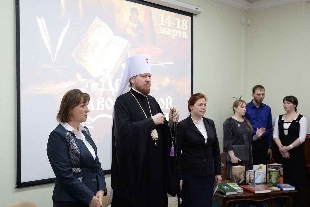 Высокопреосвяшеннейший Владимир обратился ко всем присутствовавшим с духовно-созидательным словом, поздравив организаторов и участников с праздником, Владыка отметил всю важность выхода первой печатной книги — как новый виток развития образования, и науки в целом, добавив, что в традиционном понятии, книга будет жить вечно и никогда не утратит свою значимость, передавая духовные и культурные ценности из поколения в поколение: