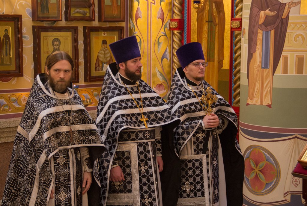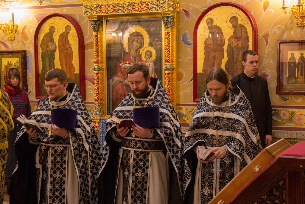 Богослужебные песнопения исполнили певчие мужского хора под управлением регента – Яны Бородиной, а также певчие Спасо-Преображенского собора под управлением регента – Анны Зайцевой.