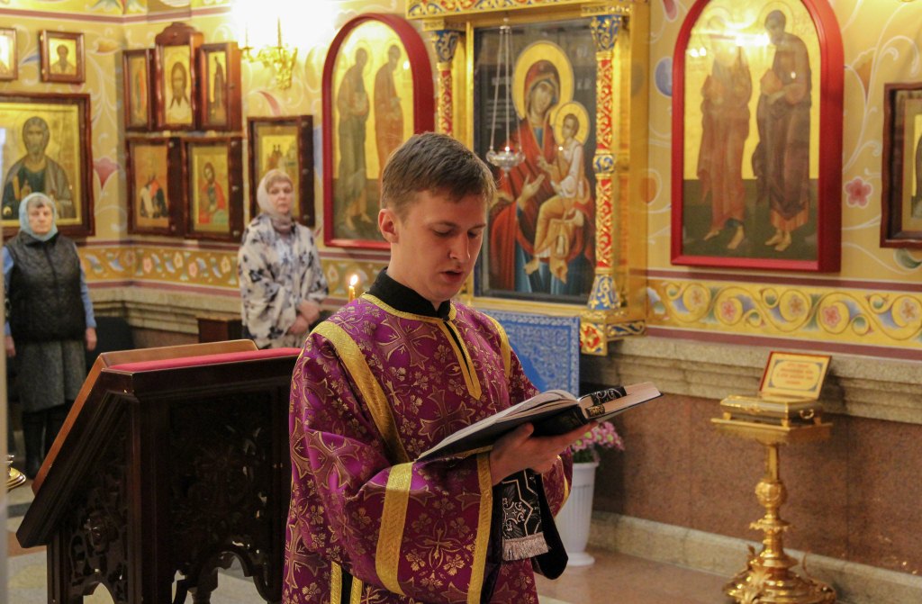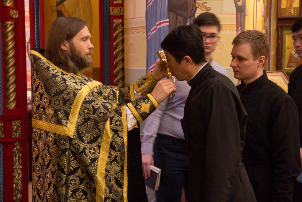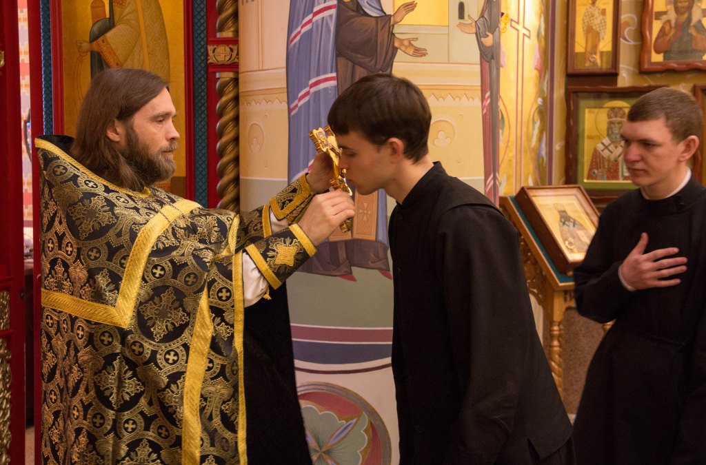 5 апреля 2018 года в семинарском храме были прочитаны чинопоследования 3, 6, 9 часов, изобразительных и вечерня в соединении с Божественной литургией Василия Великого, которую совершил иерей Олег Кузнецов.