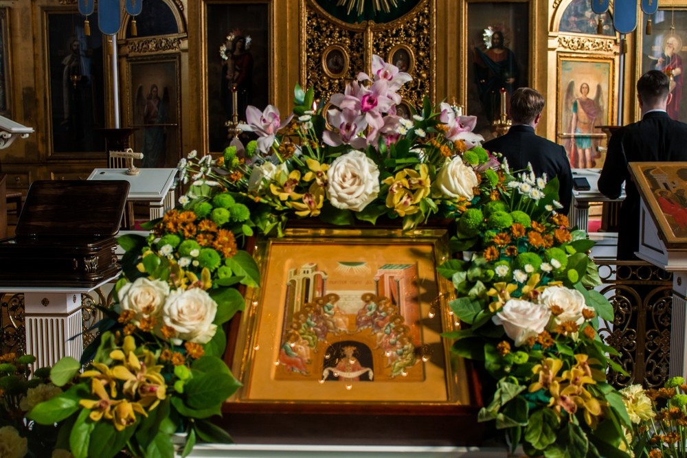 После окончания литургии было совершено славление перед храмовой иконой Божией Матери «Царскосельская», а также заупокойная лития.